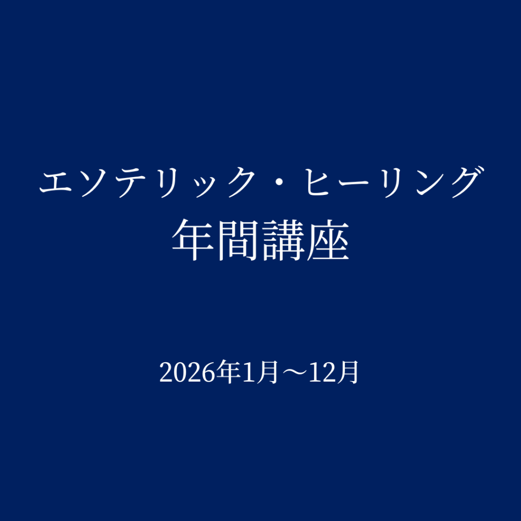 2025-10-04 / 最終更新日時 : 2026-01-09 aquarius-g エソテリック・サイエンス 【2026年1月~12月】「エソテリック・ヒーリング」年間講座(録画配信&Zoom質疑応答) 微細なエネルギーの世界を可視化し統御する術を学ぶ 「すべてはエネルギーである」という観点に立った壮大な宇宙論に基づき、「真の人間である魂のエネルギーを活用して行うヒーリング」および「新時代のエネルギー医学の原理」を説いた […]