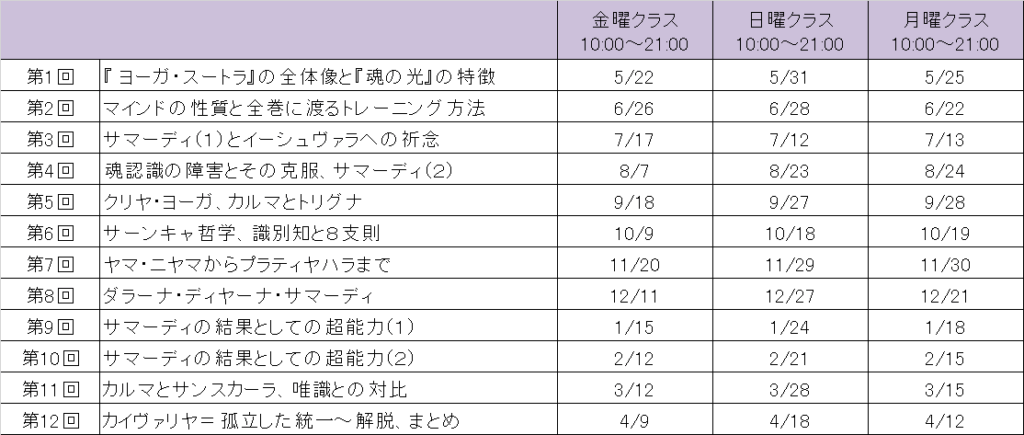 【2026年5月~2027年4月】『 魂の光~パタンジャリのラージャ・ヨガ経典 』解説年間講座